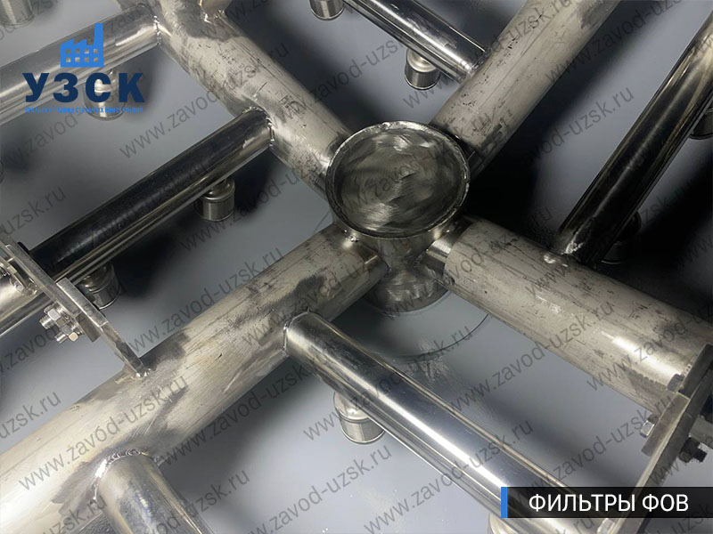 Корпуса фильтров и контактной камеры изготовлены из конструкционной стали Ст3сп5. Элементы распределительных устройств выполнены из нержавеющей стали, что важно для узлов, где регулярно выполняются промывки и требуется повышенная стойкость внутренних компонентов.
