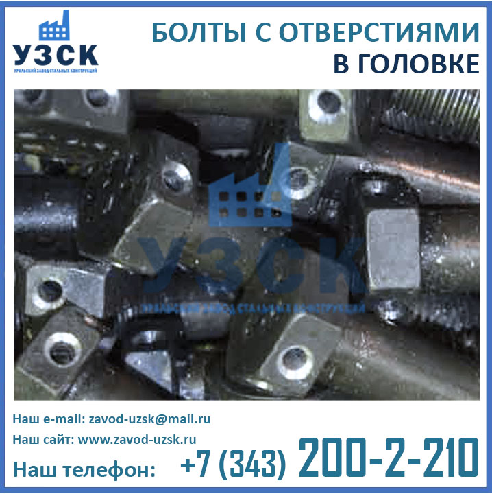 Уральским Заводом Стальных конструкций налажено производство болтов с отверстиями всех типоразмеров от М10 до М42 следующих модификаций: